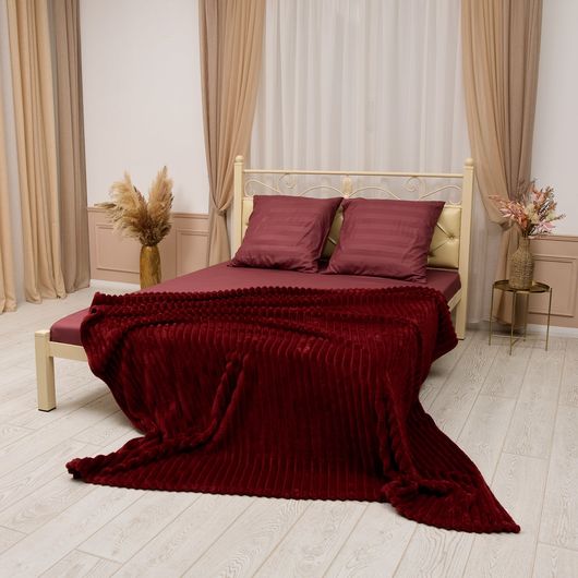 В комплект входит простыня, две наволочки (50×70 или 70×70 см), а также роскошный бархатный плед, который придаёт ещё больше тепла и изысканности. Плед можно использовать как декоративный элемент или как мягкое покрывало для прохладных вечеров.