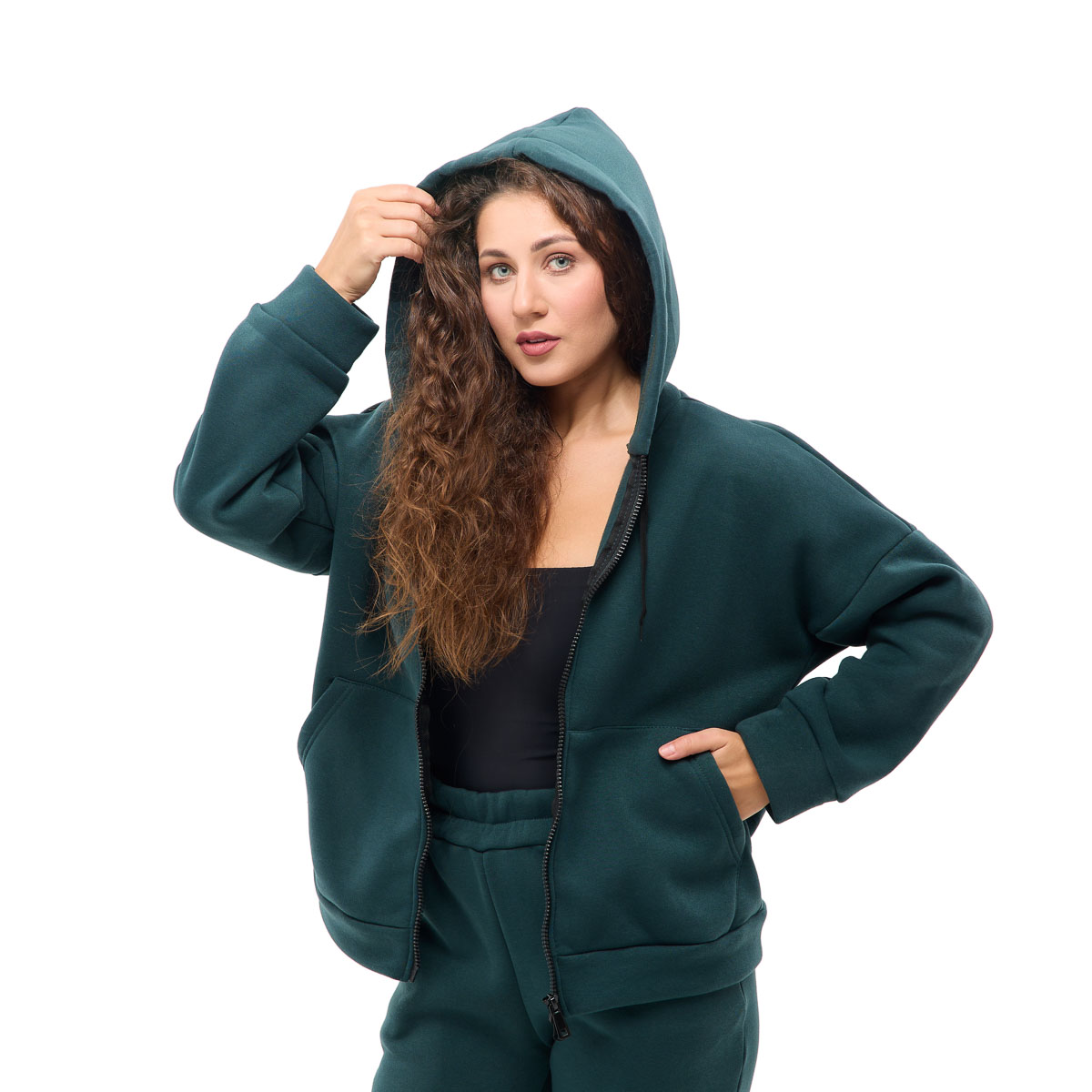 Кофта свободного кроя на молнии с удобными карманами и капюшоном - идеальный выбор для любой погоды! Вы будете выглядеть стильно и чувствовать невероятный комфорт, где бы вы ни были!