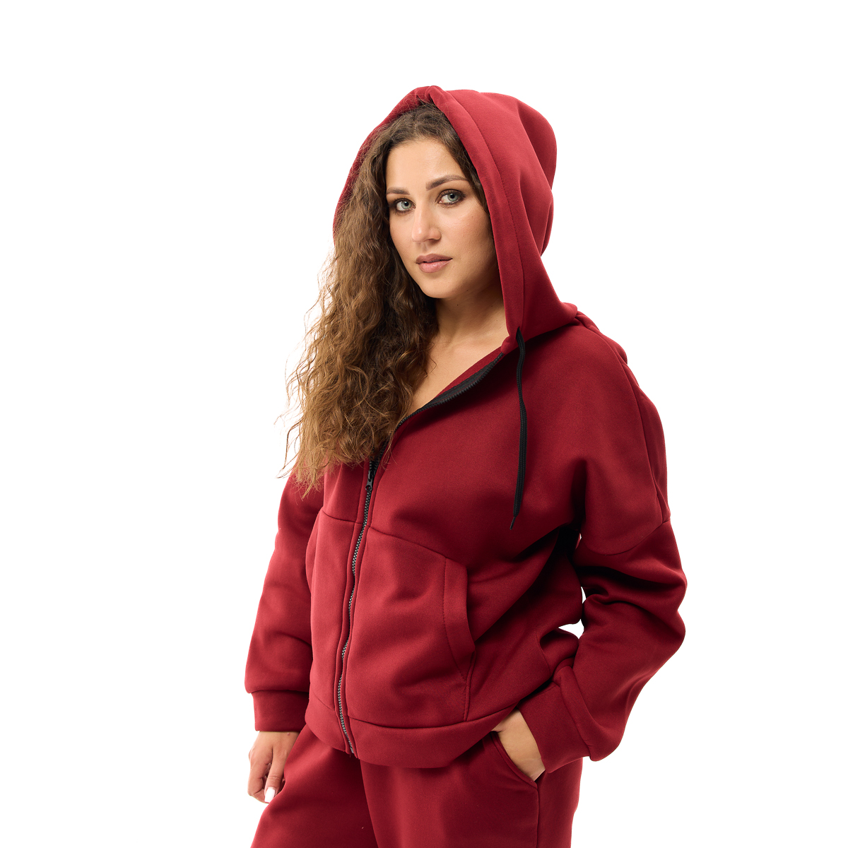 Кофта свободного кроя на молнии с удобными карманами и капюшоном - идеальный выбор для любой погоды! Вы будете выглядеть стильно и чувствовать невероятный комфорт, где бы вы ни были!