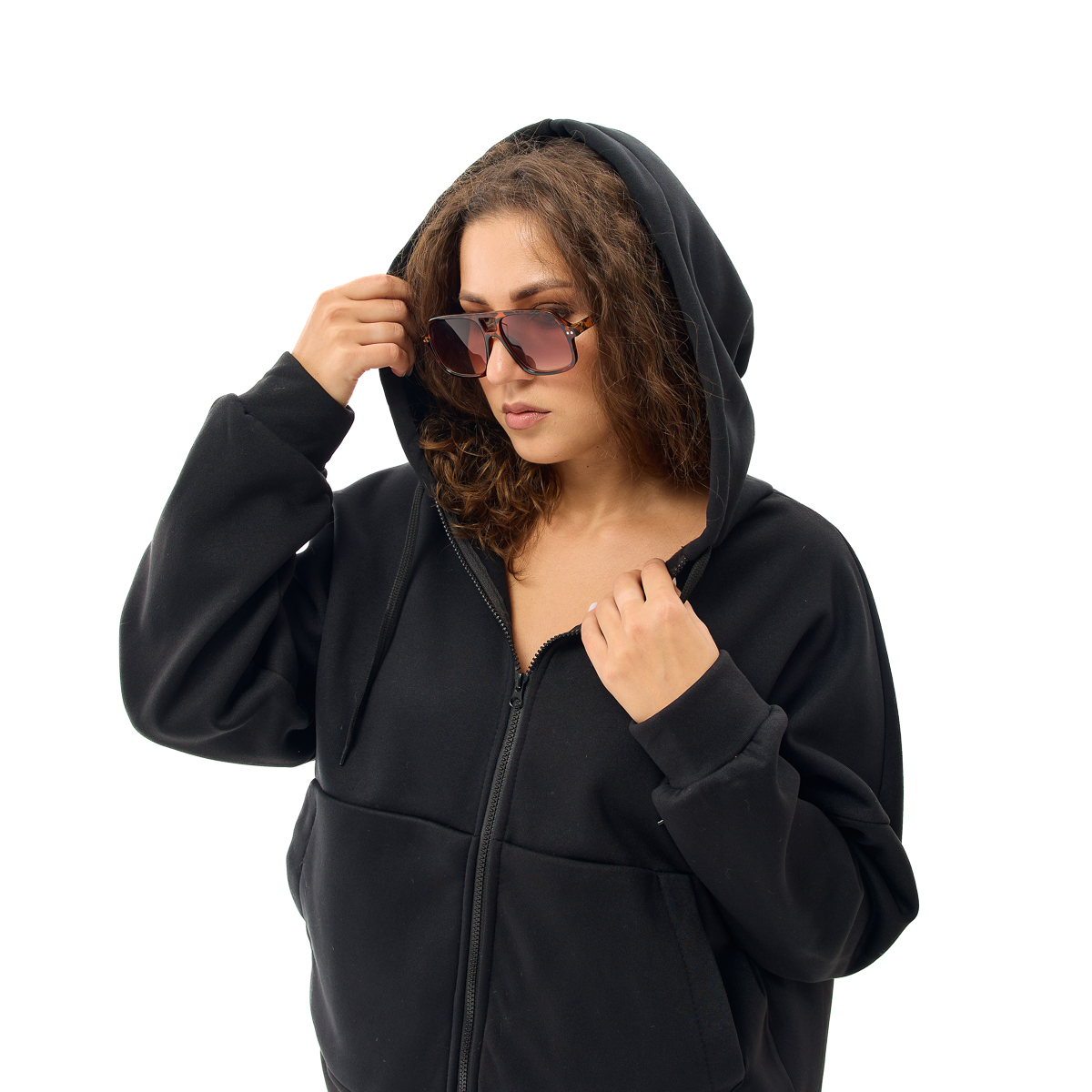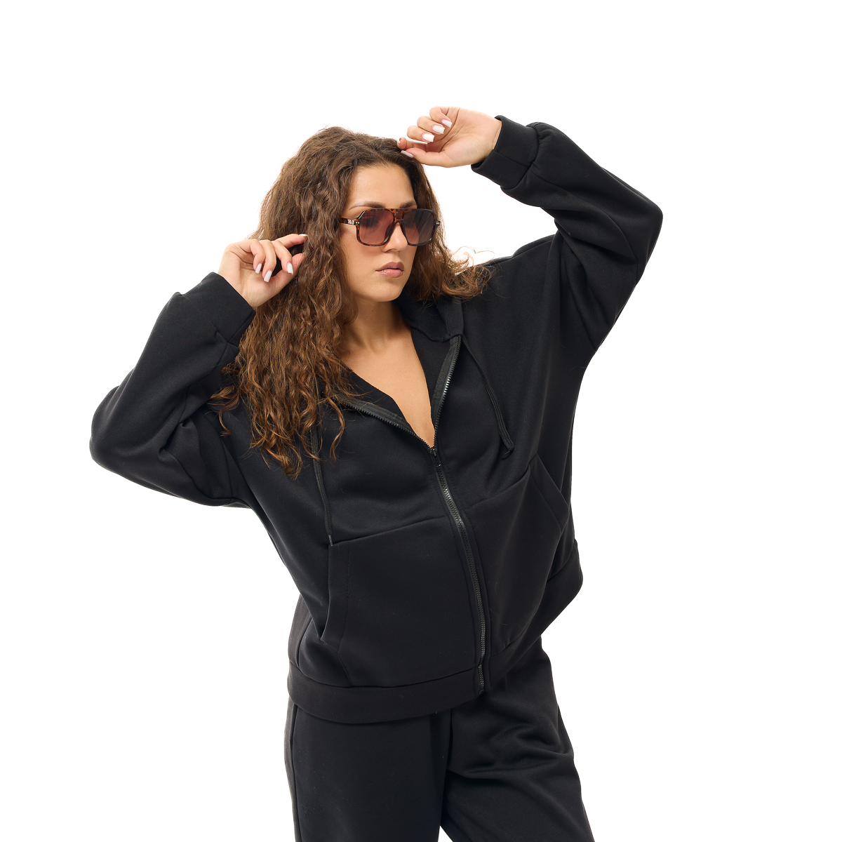 Кофта свободного кроя на молнии с удобными карманами и капюшоном - идеальный выбор для любой погоды! Вы будете выглядеть стильно и чувствовать невероятный комфорт, где бы вы ни были!