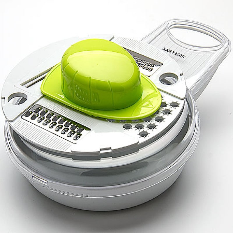 Терка круглая 4 лезвия Материал: пластик, нержавеющая сталь 18/0 Цвет: Салатовый Размер коробки: 18,6 х 8 х 28,2см Вес: 257 г Тёрка мультифункциональная MAYER & BOCH займет достойное место среди аксессуаров на Вашей кухне. Нарезать или нашинковать картофель, перец, баклажаны, морковь, яблоки, приготовить салаты или детские овощные и фруктовые пюре Вы сможете всё это сделать с помощью одного инструмента - многофункциональной тёрки. Все ножи изготовлены из высококачественной нержавеющей стали, остальные части из прочной пластмассы. Рабочие поверхности тёрки гигиеничны и долговечны. Сталь не окисляется, таким образом, овощи и фрукты сохраняют полезные витамины и вещества.
