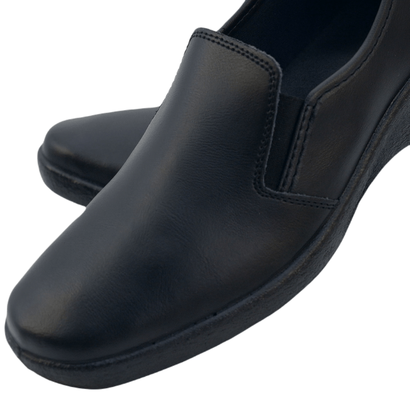 Адаптивность к форме стопы: Вшитые боковые эластичные вставки позволяют туфлям идеально сидеть на ноге, обеспечивая непревзойденный уровень комфорта.