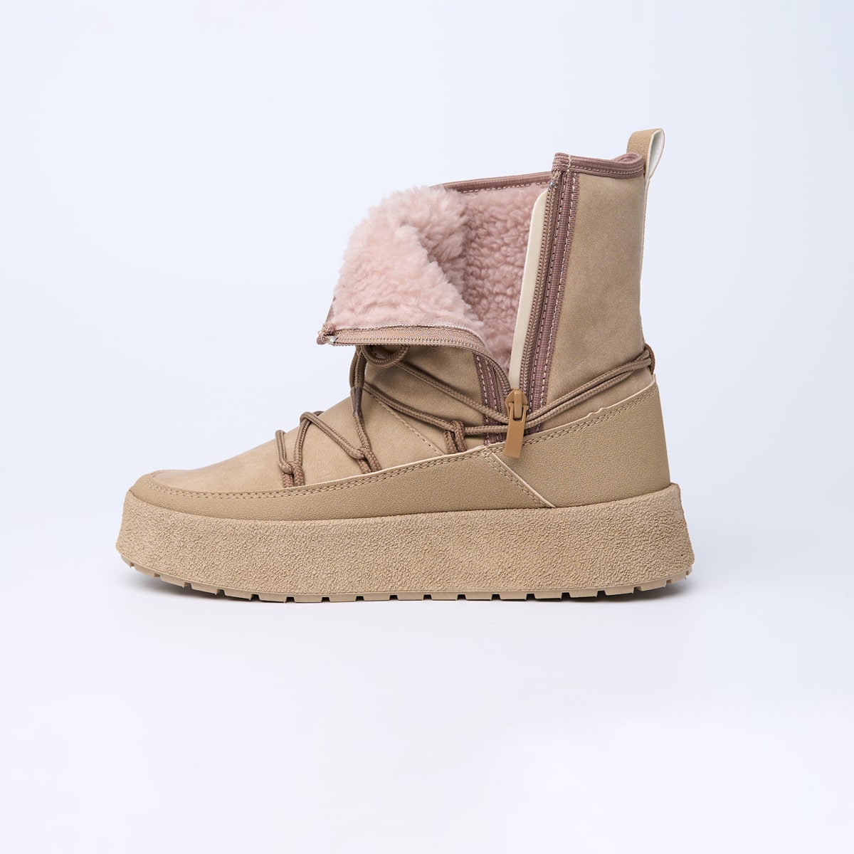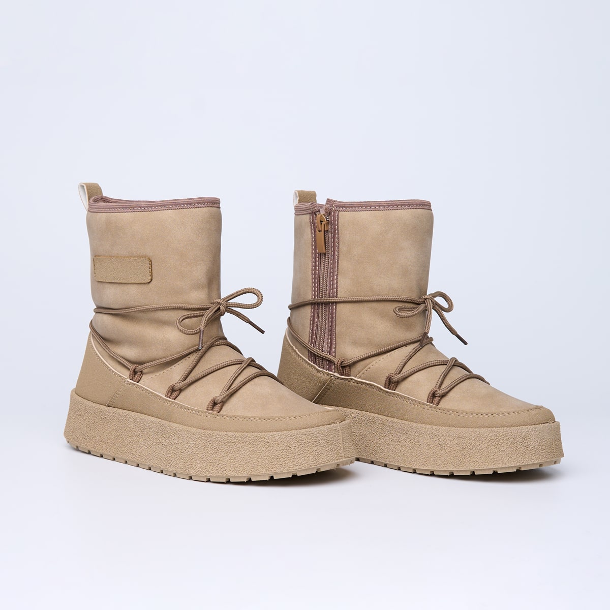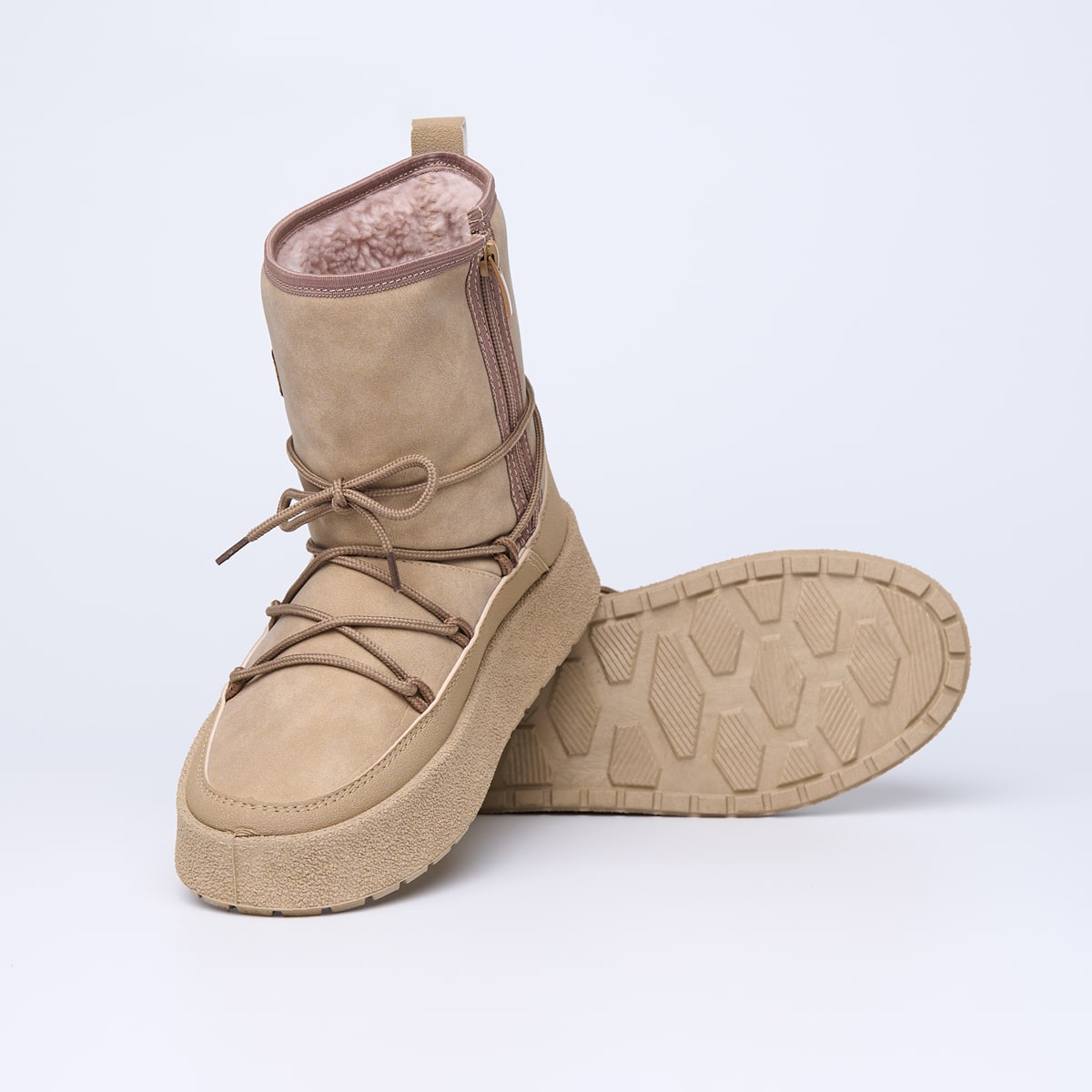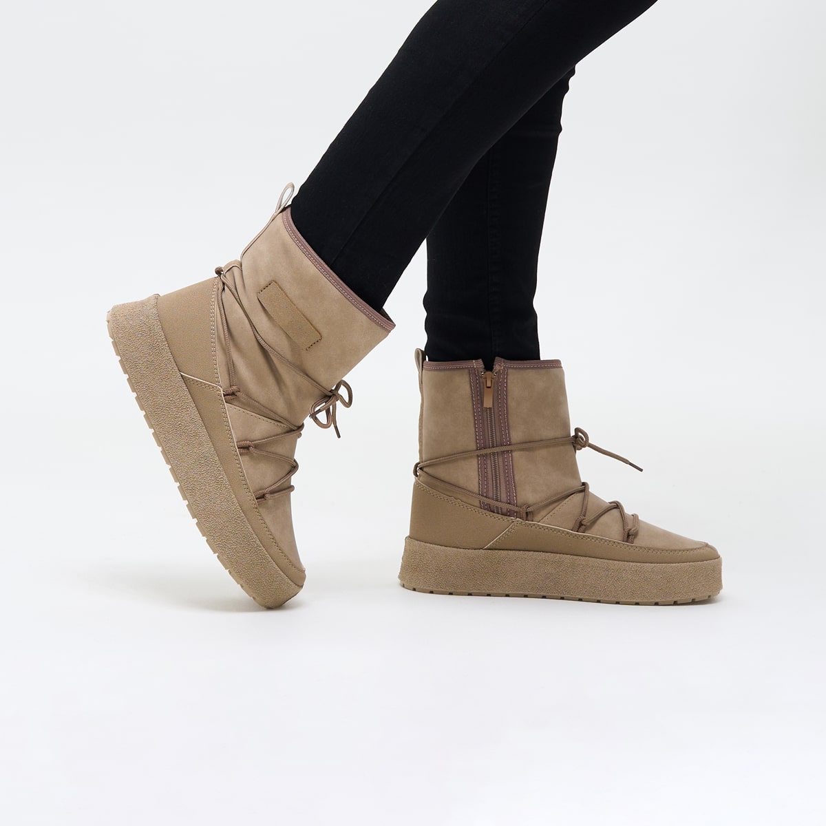 Зимові чобітки у спортивному стилі — це поєднання затишку, комфорту та сучасного дизайну. Виготовлені з високоякісної екошкіри зовні та м’якого утеплювача всередині, ці чобітки стануть ідеальним вибором для прогулянок у холодну пору року. Гнучка підошва зі спіненого матеріалу забезпечує гарне зчеплення з поверхнею, зменшуючи втому ніг, а декоративна шнурівка по зовнішньому контуру надає взуттю стильного міського акценту. Доступні у двох універсальних кольорах — бежевому та чорному — ідеально підходять до будь-якого гардероба.