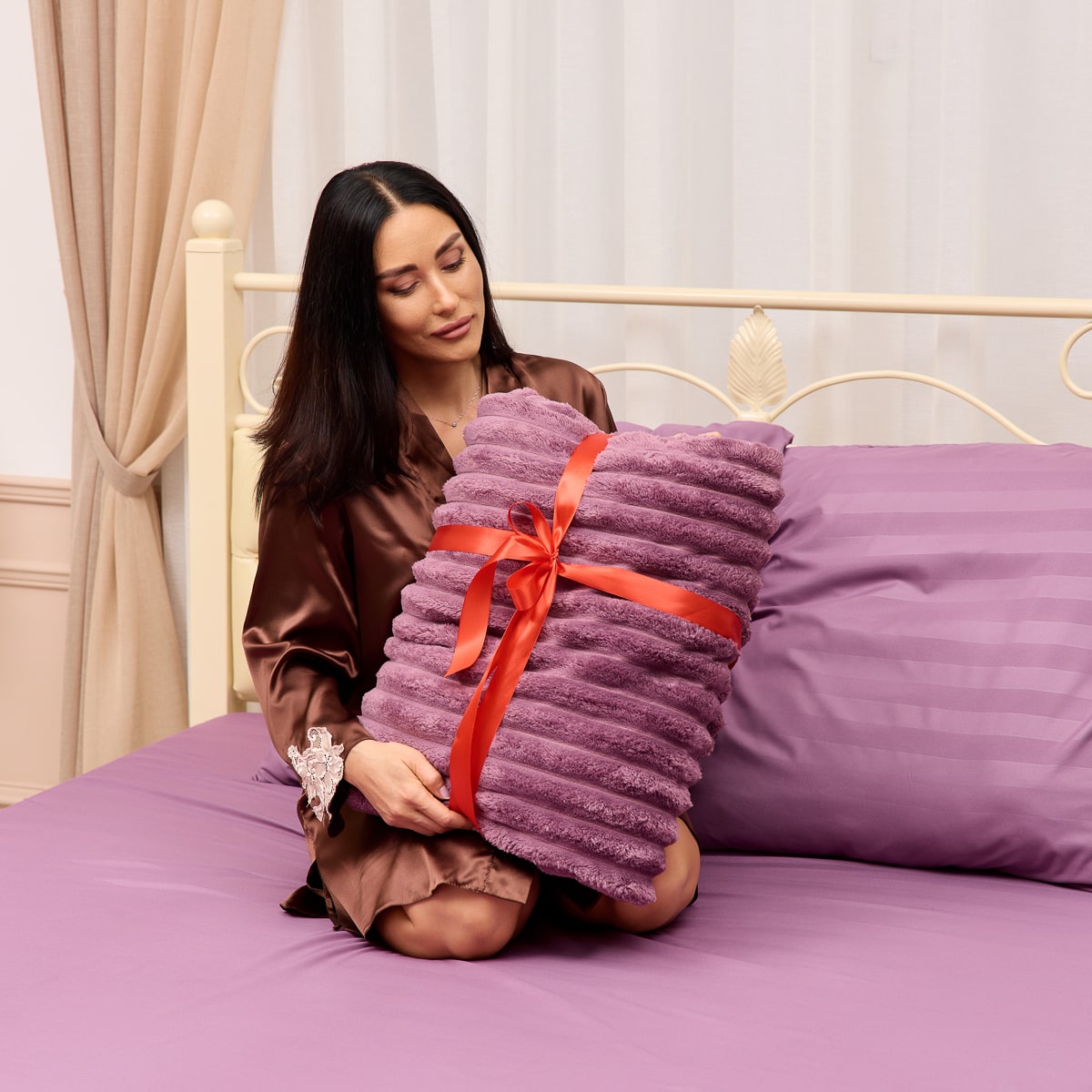 До комплекту входить не лише стандартна білизна, а й оксамитовий плед, який додає ліжку особливої вишуканості. Він може слугувати як декоративне покривало або затишна ковдра — ідеально для створення готельного ефекту вдома.