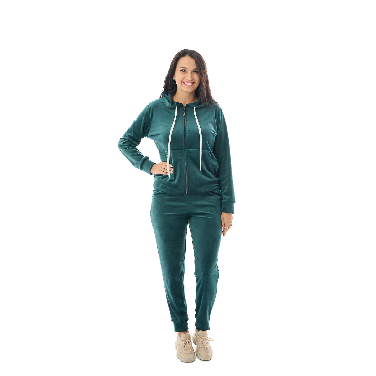 Дуже гарний смарагдовий колір, велюр хорошої якості, прекрасний і зручний костюм, і дуже крута знижка і ціна. Рекомендую, я задоволена, спасибі!