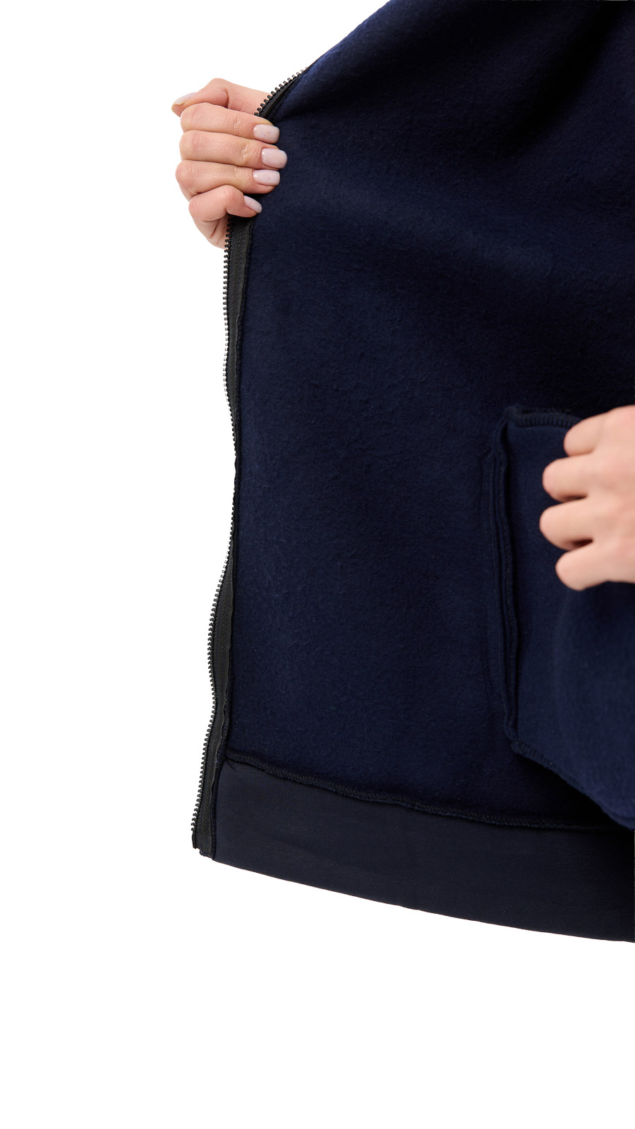 Кофта має вільний, але охайний крій, який гарно сідає на будь-яку фігуру. Завдяки капюшону та м’яким манжетам модель виглядає стильно й водночас захищає від прохолоди.