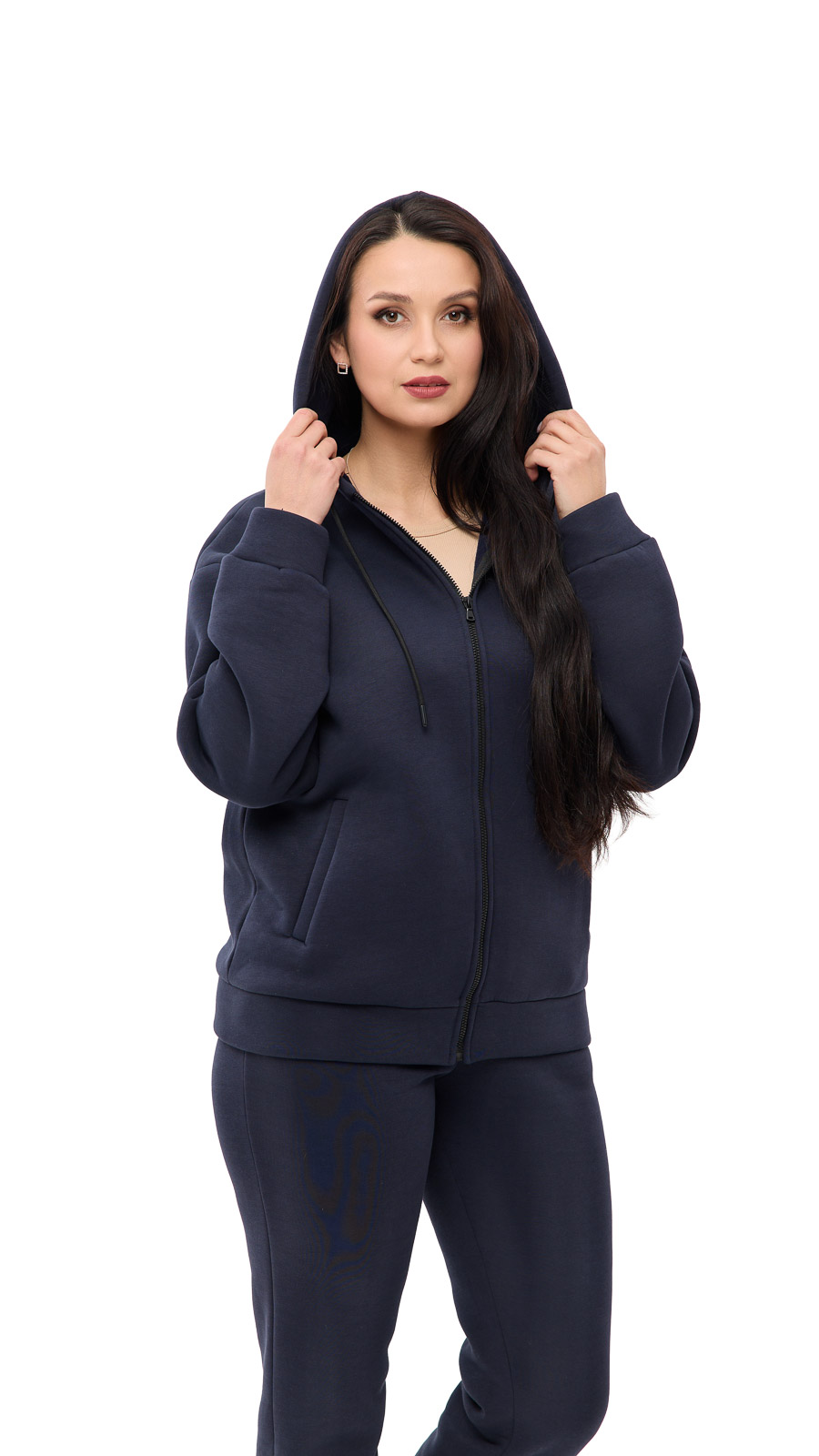 Кофта має вільний, але охайний крій, який гарно сідає на будь-яку фігуру. Завдяки капюшону та м’яким манжетам модель виглядає стильно й водночас захищає від прохолоди.
