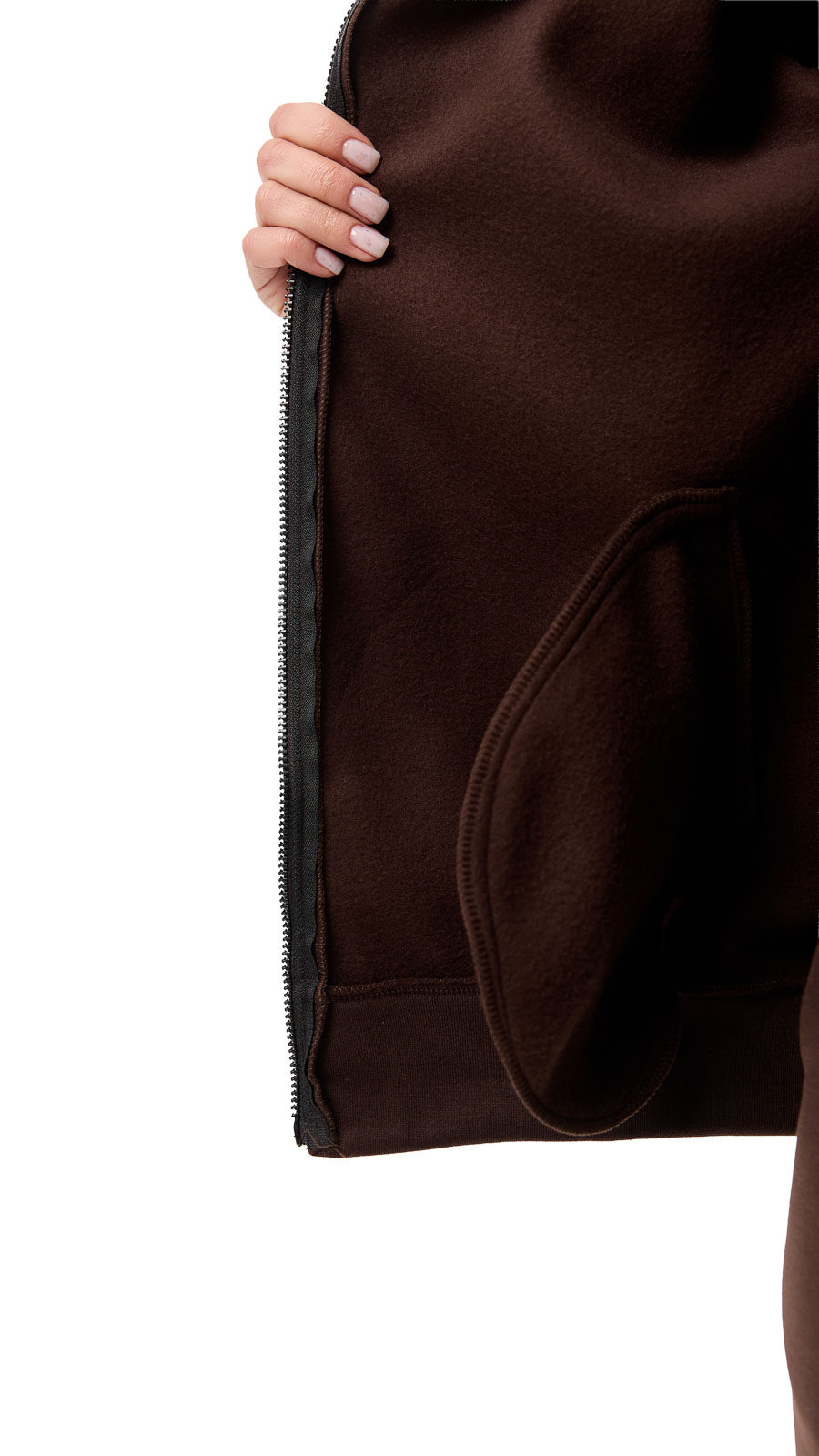 Кофта має вільний, але охайний крій, який гарно сідає на будь-яку фігуру. Завдяки капюшону та м’яким манжетам модель виглядає стильно й водночас захищає від прохолоди.