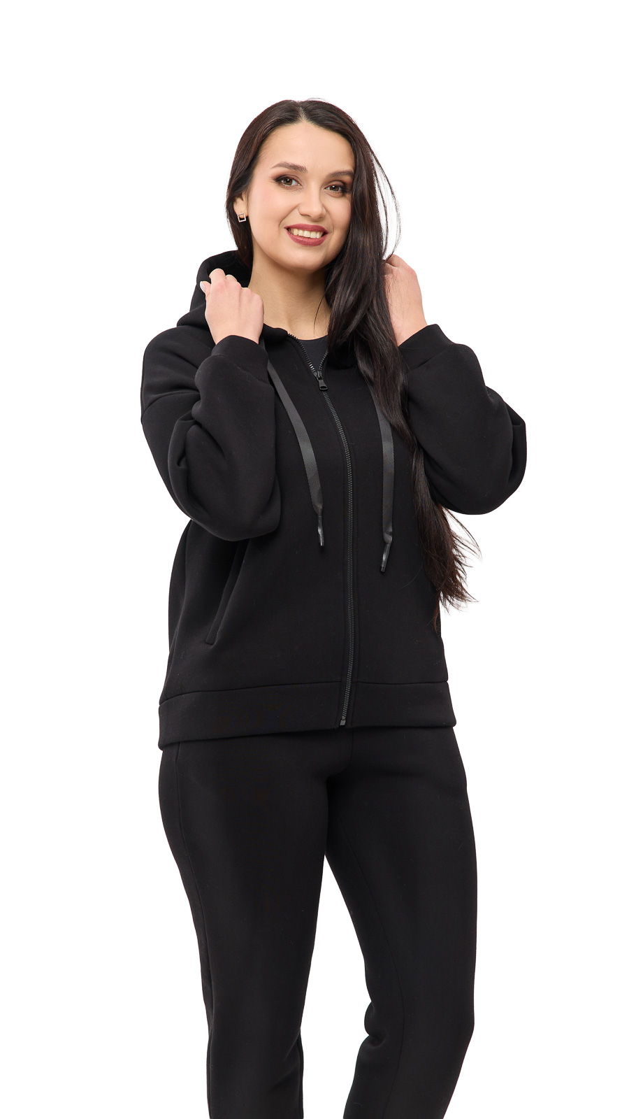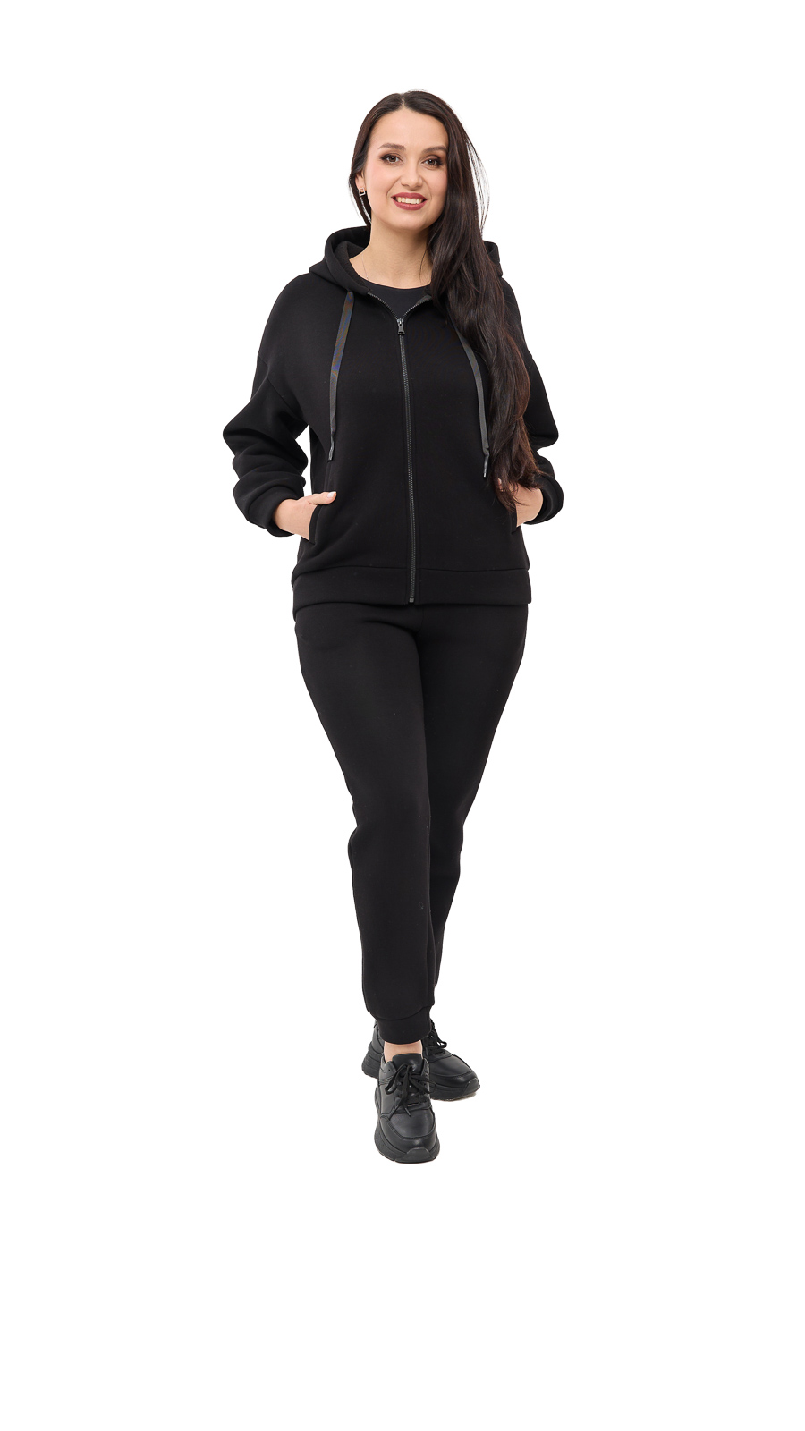 Костюм складається з кофти на блискавці з капюшоном і зручних брюк з високою посадкою.