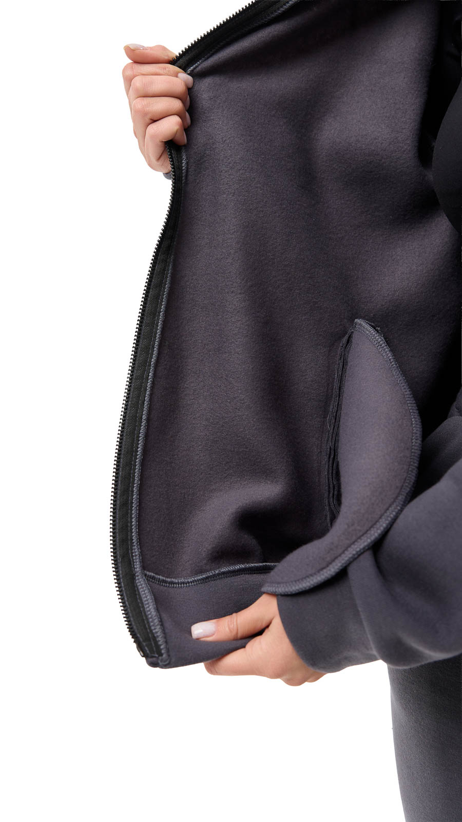 Кофта має вільний, але охайний крій, який гарно сідає на будь-яку фігуру. Завдяки капюшону та м’яким манжетам модель виглядає стильно й водночас захищає від прохолоди.